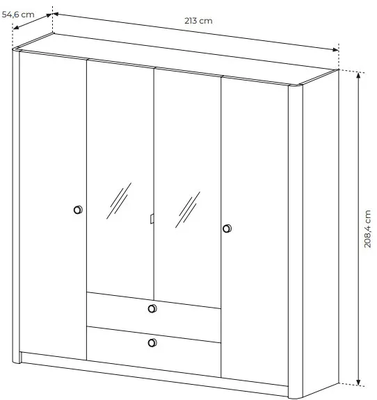 • szerokość: 213 cm, głębokość: 54,6 cm, wysokość: 208,4 cm