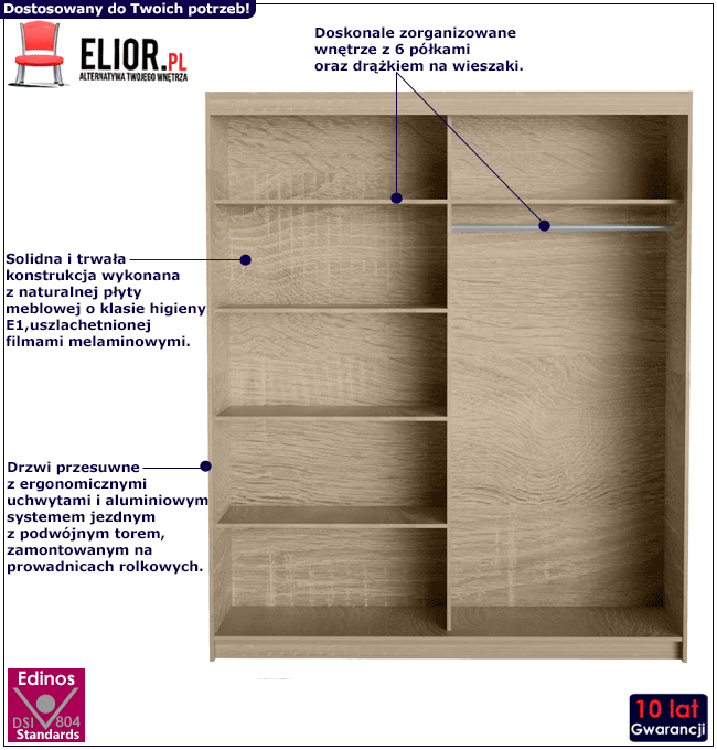 • Szukasz ciekawej i praktycznej szafy przesuwnej? Kliknij w link i sprawdź także inne szafy przesuwne w sklepie Edinos.pl. Stwórz własny praktyczny zestaw. Zamawiając produkty razem, oszczędzasz na współnej wysyłce.