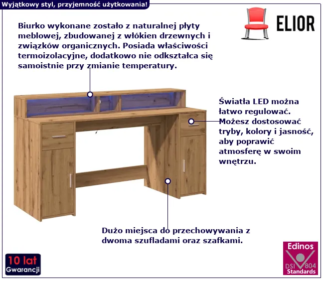 Dotyczy: Biurko podświetlane 160 cm szary dąb sonoma - Duna