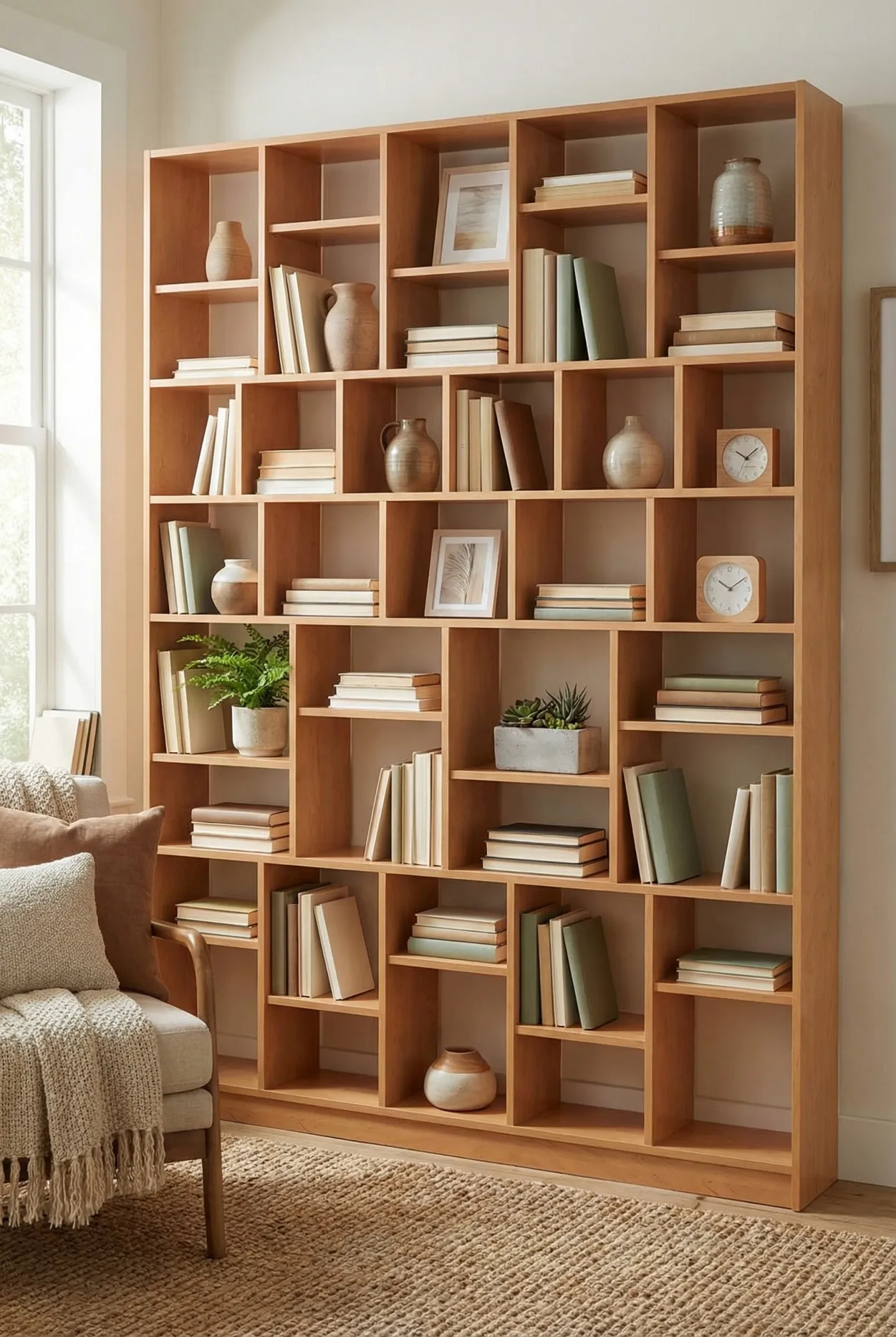 Wykorzystanie dużego regału Epozio olcha w nowoczesnym wnętrzu