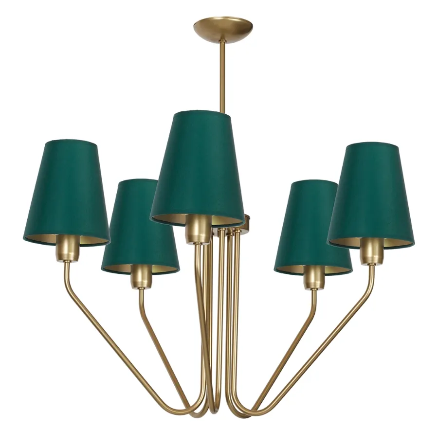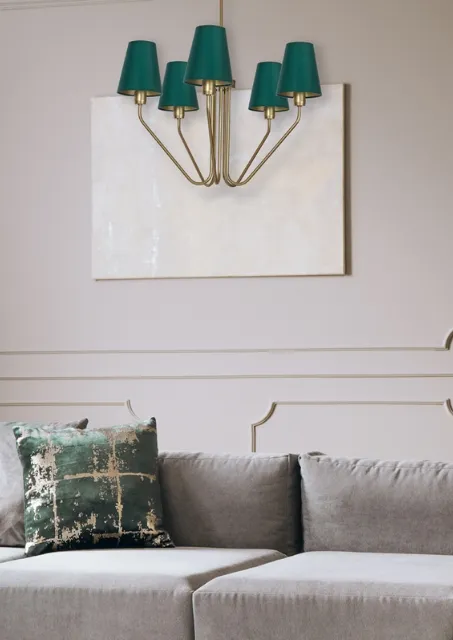 Dominującym elementem żyrandola K427-Tino jest tradycyjny tkaninowy klosz o lekko trapezowym kształcie. Charakterystycznie wygięte metalowe ramię nadaje lampie nowoczesny rys. Żyrandol K427-Tino dostępny jest w stylowych opcjach kolorystycznych: klasyczna czerń ze złotymi akcentami, uniwersalna biel oraz butelkowa zieleń z mosiądzem. Oba warianty podkreślają elegancję lampy, umożliwiając dostosowanie jej do różnych wnętrz. Wano to nie tylko pojedynczy element, do wyboru mamy lampę stołową, kinkiety, żyrandole i lampy  podłogowe. Pozwalają na stworzenie całościowej aranżacji oświetleniowej, zapewniając jednocześnie spójność stylu w całym pomieszczeniu. Metalowe ramie lampy nie tylko nadaje jej nowoczesnego charakteru, ale także gwarantuje odporność na uszkodzenia. Tkaninowy klosz miękko rozprasza światło, tworząc jednocześnie przytulną atmosferę. Materiały użyte do produkcji to synonim trwałości i elegancji. Z myślą o zadowoleniu klienta, lampa objęta jest dziesięcioletnią gwarancją. To nie tylko oświetlenie – to inwestycja w trwałość i jakość, która zachwyci na wiele lat.