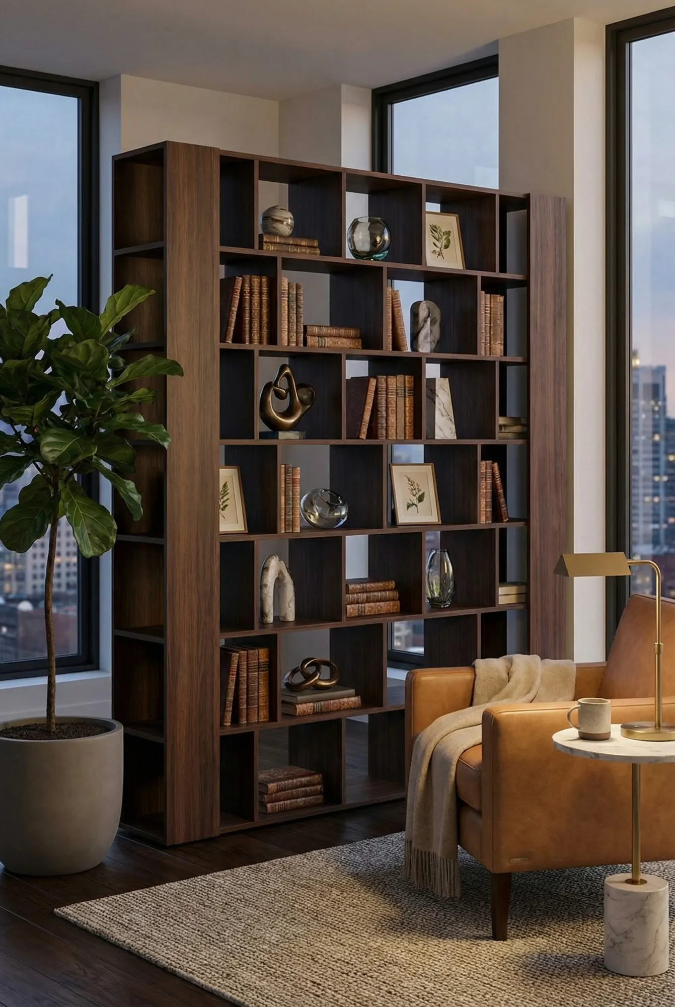 Salon z wykorzystaniem regału wenge Naseri