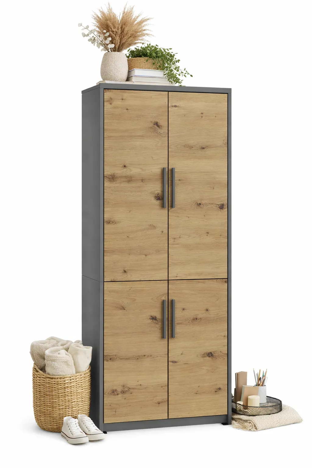 Duży regał zamykany dąb artisan + antracyt - Opolia 11X