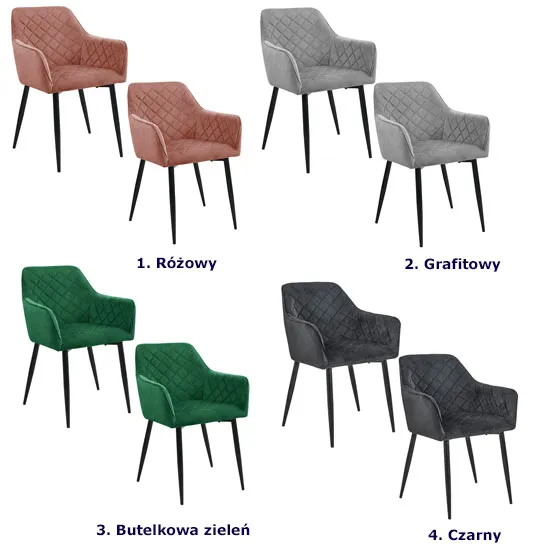 Dotyczy: Czarny zestaw 2 welurowych krzeseł z podłokietnikami - Cejlon