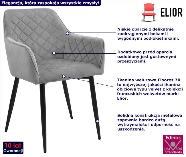 Dotyczy: Komplet 2 welurowych krzeseł z podłokietnikami butelkowa zieleń - Cejlon