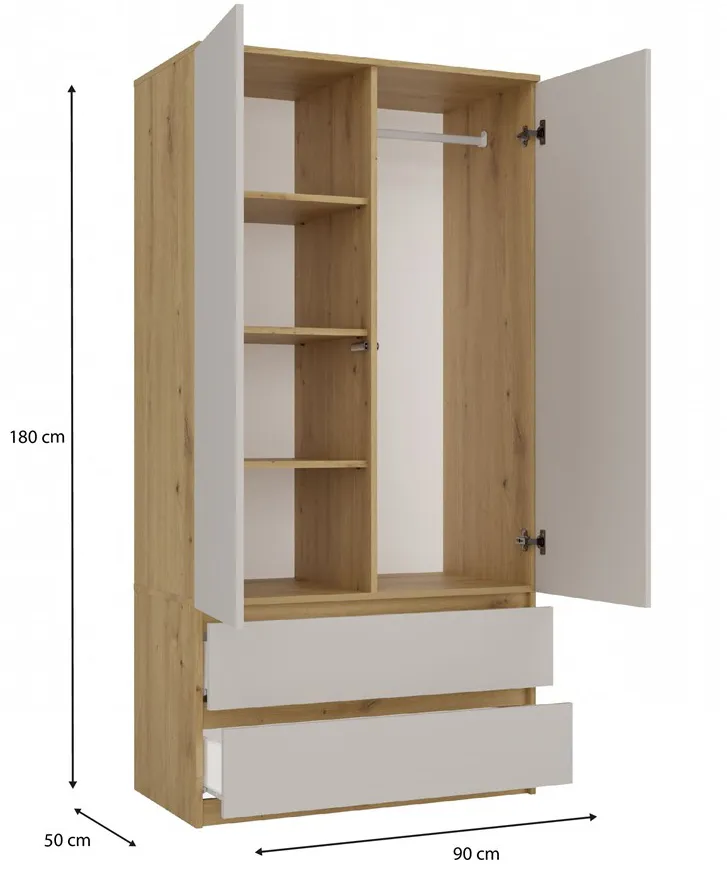 Dotyczy: Biała szafa na ubrania z 2 szufladami - Ollos