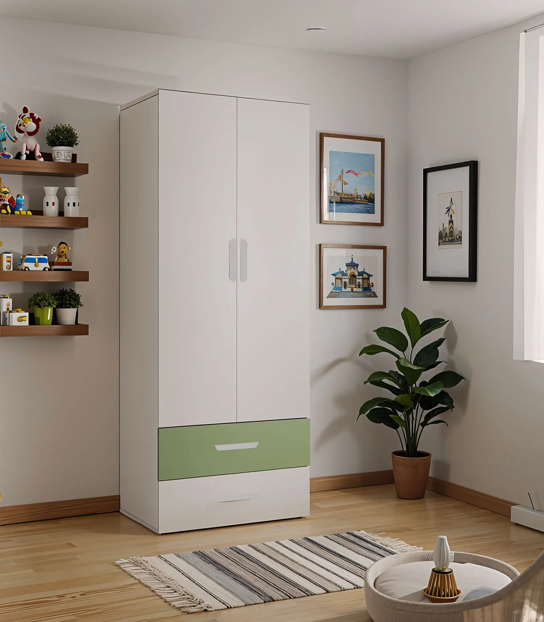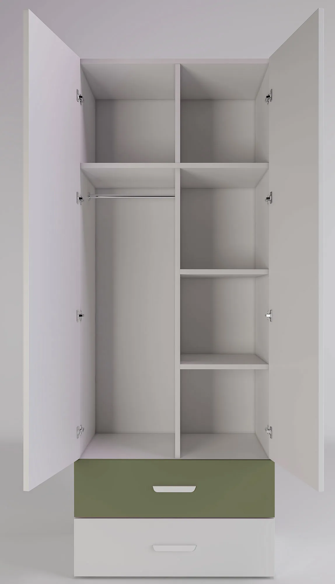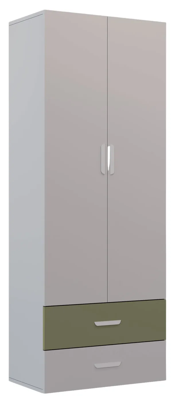 Dwudrzwiowa szafa z 2 szufladami dla dzieci kaszmir + zielony - Zimi 3X