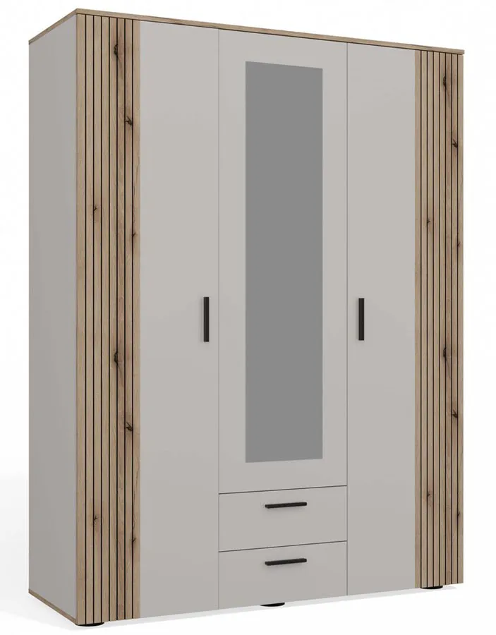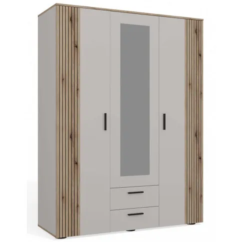 Szafa jest solidnie wykonana i bardzo pojemna. Estetyka i kolorystyka pasują do wielu aranżacji, a jakość materiałów daje poczucie trwałości. To praktyczny mebel, który sprawdza się zarówno w mniejszych, jak i większych pomieszczeniach, nie dominując przestrzeni, a jednocześnie nadając jej elegancji.