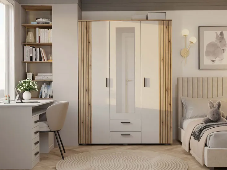 Wyobraź sobie poranek, w którym wszystko masz pod kontrolą. Budzisz się bez pośpiechu, otwierasz elegancką szafę, a Twoje ubrania czekają uporządkowane, gotowe na każdy scenariusz dnia. Lustro w drzwiach odbija ciepłe światło poranka, a Ty z uśmiechem przymierzasz ulubiony zestaw. To nie sen – to codzienność z szafą Dilsox marki Edinos Premium, która łączy nowoczesny design z praktycznymi rozwiązaniami. Zaprojektowana z myślą o estetyce i komforcie, świetnie odnajdzie się zarówno w sypialni, przedpokoju, jak i garderobie.