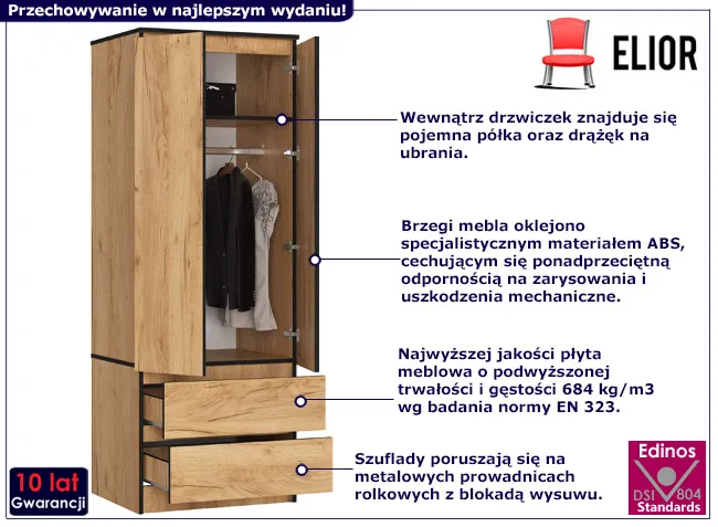 • Kolor: korpus: dąb craft, front: dąb craft. Kliknij w link i sprawdź także inne szafy dwudrzwiowe w sklepie Edinos.pl.