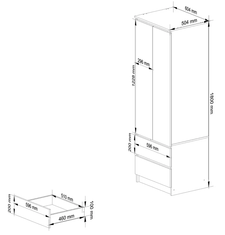 • Wymiary: szerokość: 60 cm, wysokość: 180 cm, głębokość: 51 cm.