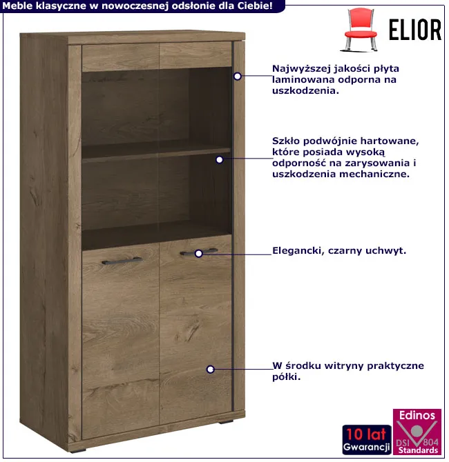 Dwudrzwiowa witryna w stylu klasycznym dąb lefkas - Aiken 12X