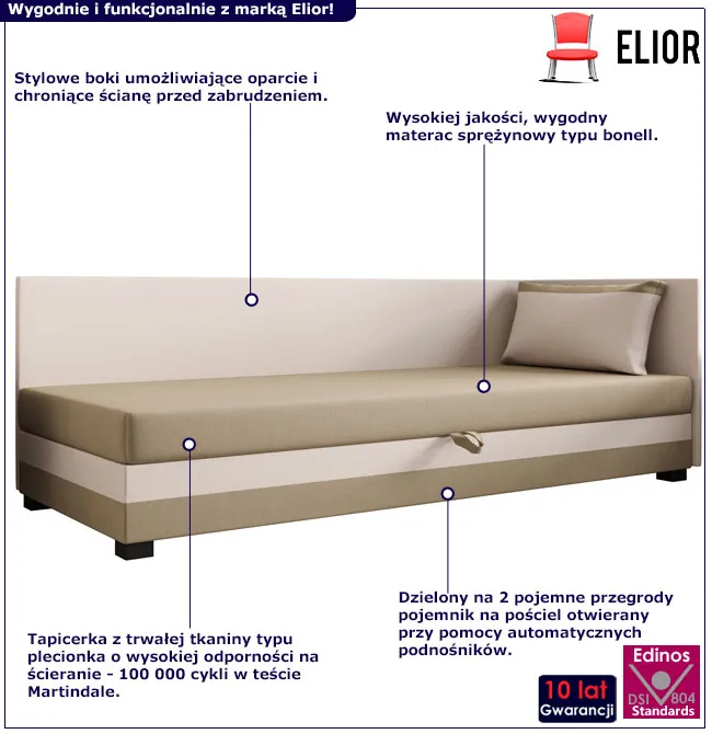 Dotyczy: Tapczan z poduszką i pojemnikiem jasny szary + ciemny szary Haxel - 5 rozmiarów