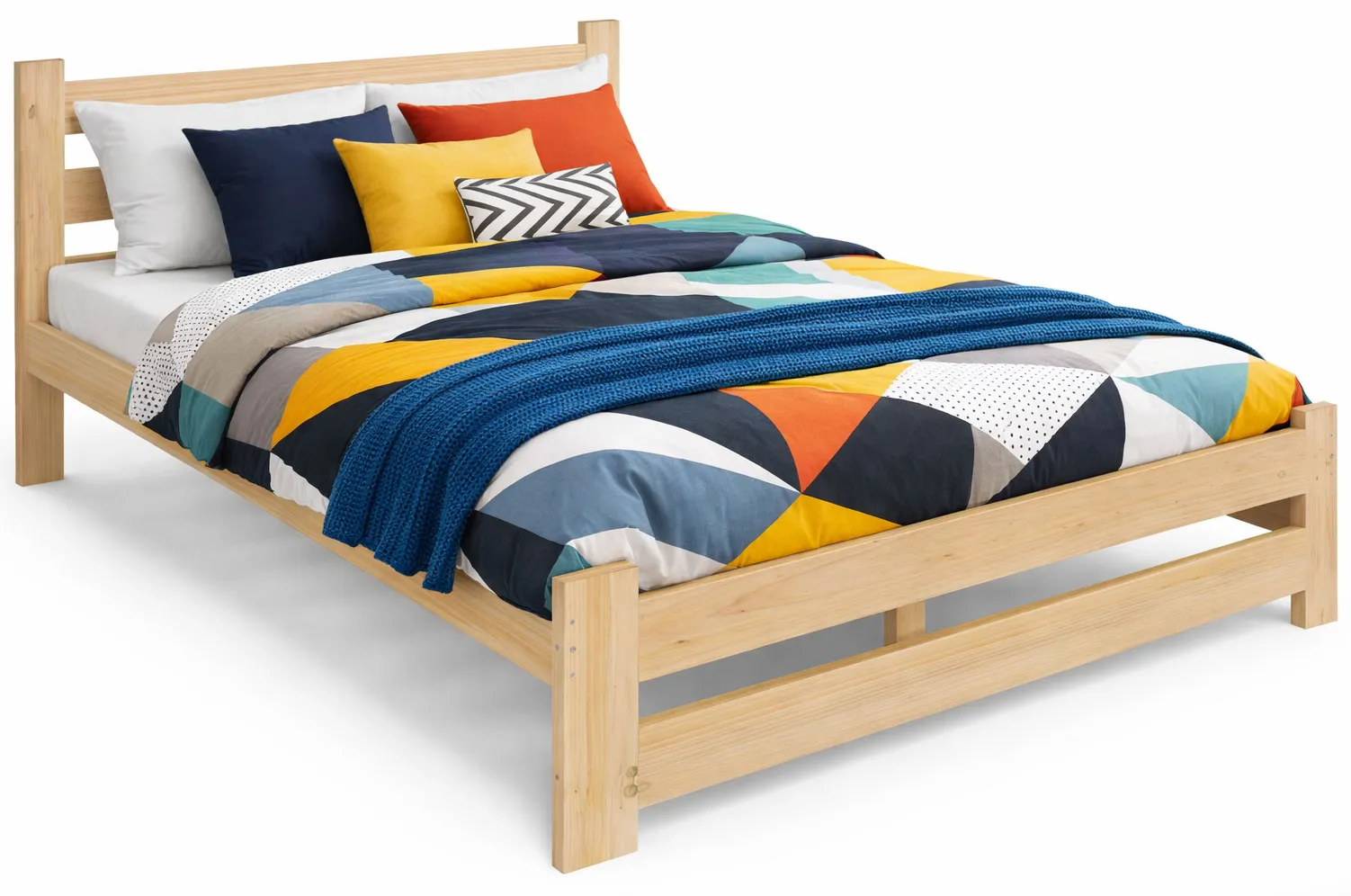Dotyczy: Białe podwójne łóżko drewniane ze stelażem 180x200 - Berti 3X