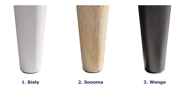 Nie od dziś wiadomo, że o końcowym efekcie decydują detale. Odpowiednio dobrane szczegóły potrafią fantastycznie wystylizować nawet prosty mebel, a z łóżka tak eleganckiego, jak Moli, stylowe detale czynią absolutnie mistrzowski mebel. Łóżko Moli opiera się na mocnych i stabilnych nogach wykonanych z litego drewna w 3 wersjach kolorystycznych: białej, sonoma lub wenge. Teraz do wybranego przez Ciebie koloru tapicerki możesz dobrać odpowiedni kolor nóżek! Spójrz na próbnik kolorów, wybierz swój ulubiony, poinformuj nas o swoim wyborze w komentarzu do zamówienia lub drogą mailową. Powiedz nam jak ma wyglądać Twoje łóżko Moli, a my zrobimy je dla Ciebie z przyjemnością!