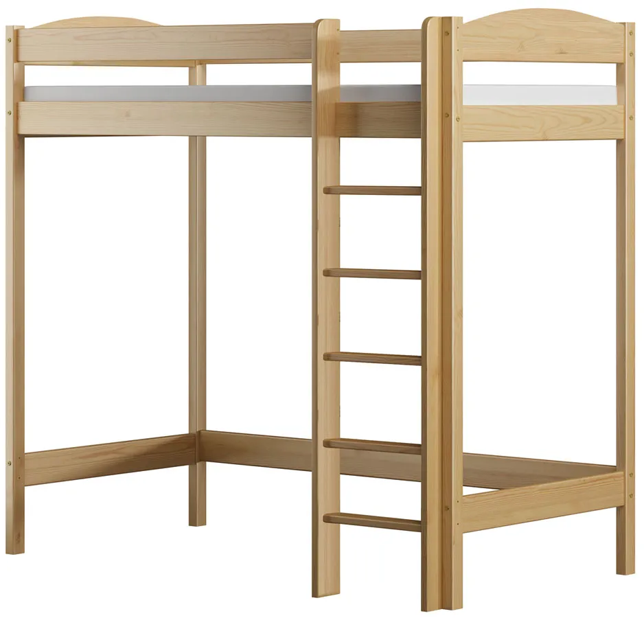 Łóżko dziecięce Laren 4X umieszczono na antresoli. Daje to dodatkową przestrzeń pod nim, którą możesz wykorzystać jako miejsce do zabawy lub nauki, gdy ustawisz tam biurko. Cały mebel wykonano z solidnego drewna. Do łóżka prowadzi 5 mocnych szczebelków. Samo miejsce do spania wyposażono w bezpieczne barierki, które zapobiegają sturlaniu malucha z posłania w nocy. Wybierz jakość, która Cię nie zawiedzie. To łóżko sprawi Twojemu dziecku wiele radości, a Tobie da pewność o jego komfortowym śnie, dzięki wygodnemu piankowemu materacowi idealnie dopasowanemu do rozmiarów mebla i niezwykle stabilnej konstrukcji.