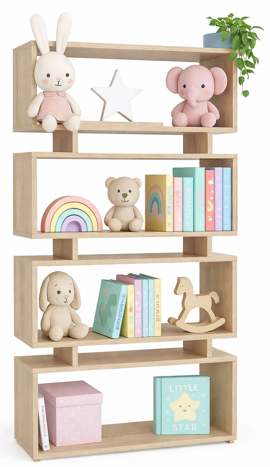 Prezentuje się niezwykle efektownie, a do tego półki są praktyczne i mieszczą zarówno książki, jak i drobne zabawki. To mebel, który łączy funkcjonalność z nowoczesnym wyglądem.