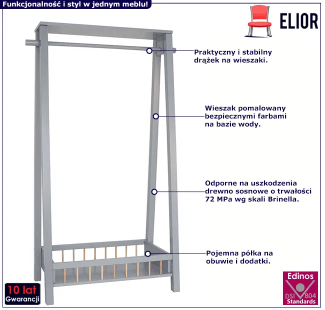 Masz w domu małą modelkę albo modela? Czy Twoja Pociecha uwielbia się przebierać, przymierzać nowe ubranka i organizować "pokazy mody"? Jeśli tak, to być może rośnie Ci mały stylista albo przyszła projektantka. Właśnie z myślą o nich marka Edinos Premium stworzyła genialny mebel, dzięki któremu Twój Maluch wyeksponuje swoją garderobę! Designerski wieszak na ubrania Tekon - Twoje dziecko będzie zachwycone!