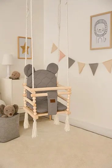 Dotyczy: Huśtawka 3w1 z drewna bukowego i srebrną poduszką - Gavo
