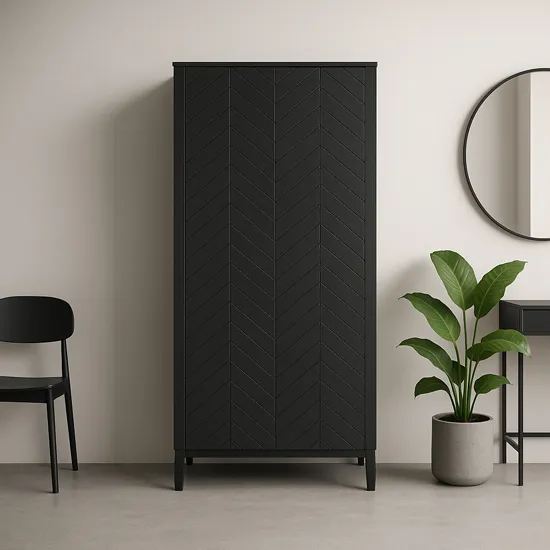 Elegancka czarna szafa na ubrania w jodełkę - Sageri 9X