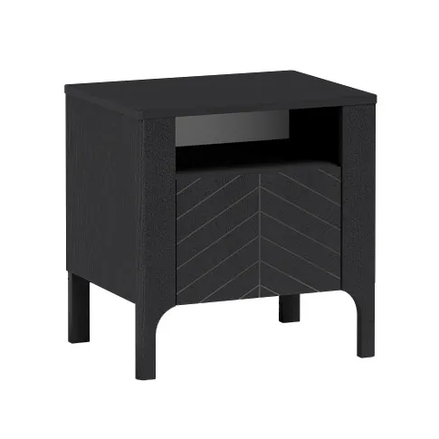 Szafka nocna Sageri 12X to przemyślany i estetyczny dodatek do każdej sypialni. Wyposażona w dwie strefy przechowywania – zamykaną szafkę z półką wewnątrz oraz otwartą wnękę – pozwala przechować zarówno większe przedmioty, jak i mieć pod ręką to, co najpotrzebniejsze przed snem. Za drzwiami ozdobionymi subtelnym wzorem w jodełkę można przechować książki, ładowarki czy kosmetyki. Otwarte miejsce u góry świetnie sprawdza się jako schowek na telefon, okulary czy szklankę wody. Jej niewielkie gabaryty czynią ją idealną do sypialni o ograniczonej powierzchni, a przy tym jej minimalistyczna forma pasuje zarówno do nowoczesnych, jak i klasycznych aranżacji. Stabilna konstrukcja oraz wytrzymałe materiały gwarantują wieloletnie użytkowanie bez uszczerbku na estetyce.