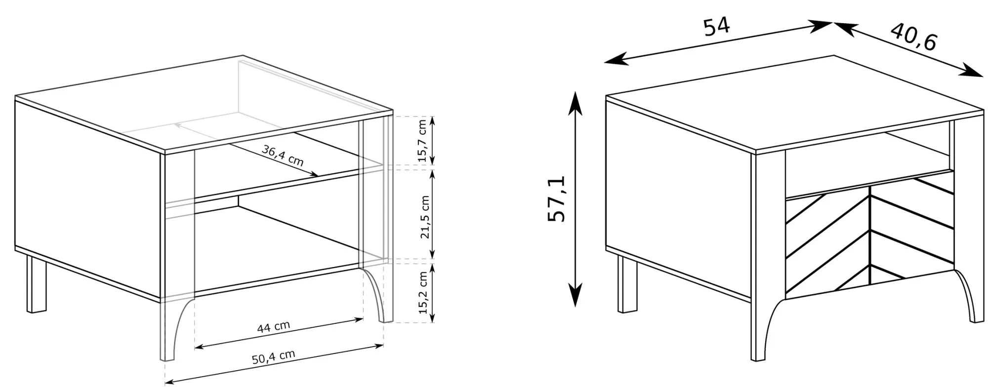 • szerokość 54 cm, wysokość 57 cm, głębokość 40,5 cm