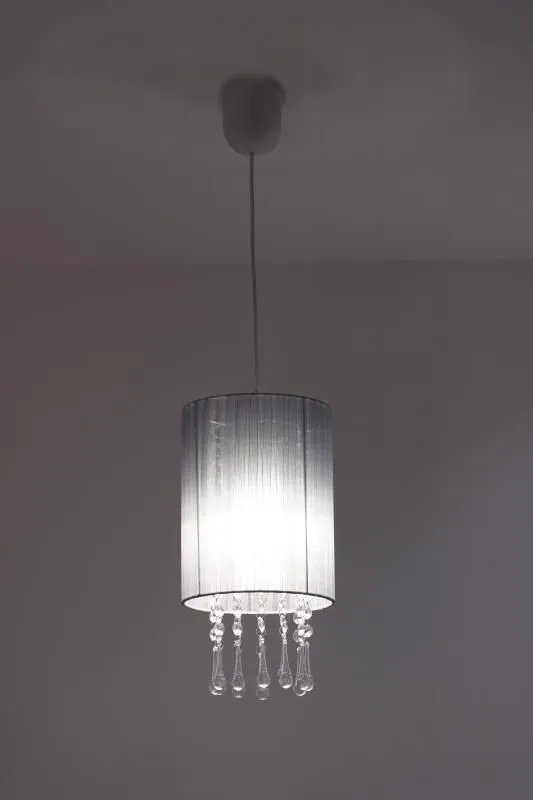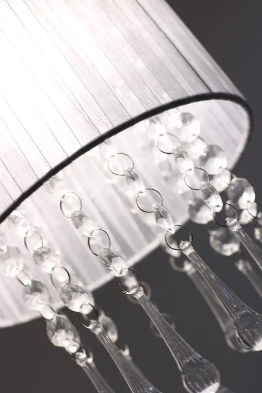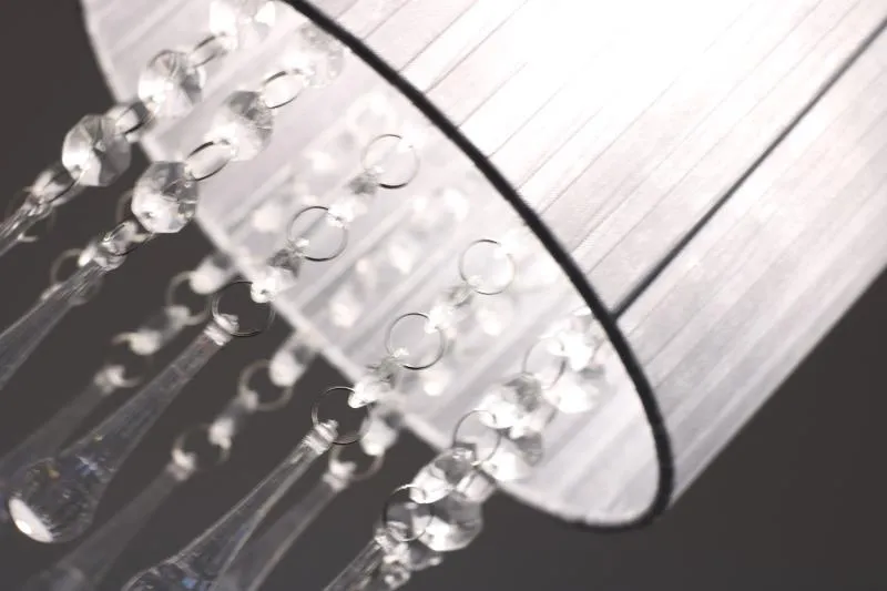 E420-Larma to elegancka lampa utrzymana w nowoczesnym stylu glamour. Jej znakiem szczególnym jest finezyjny abażur, spod którego zwisają akrylowe kryształki. Lampa została wykonana z materiałów wysokiej jakości, dzięki czemu prezentuje się wspaniale zachowując przy tym walory niezawodności. Szczególnie polecana do wnętrz nowoczesnych i glamour.