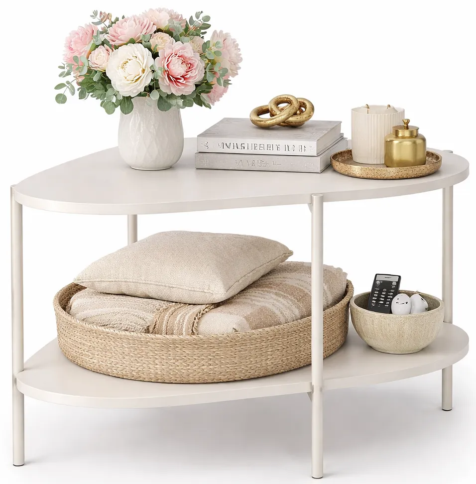 Nowoczesny stolik kawowy z kolekcji Sageri 10X to wyjątkowe połączenie funkcji i formy. Zaokrąglony, organiczny kształt blatu przełamuje surowość prostych wnętrz i wprowadza łagodny, nowoczesny akcent. Dwupoziomowa konstrukcja zwiększa użyteczność – dolna półka jest idealna na czasopisma, książki, piloty czy dekoracje. Zaokrąglone krawędzie zwiększają bezpieczeństwo – zwłaszcza w domach z dziećmi – a jego kompaktowe rozmiary sprawiają, że świetnie odnajdzie się zarówno w przestronnych salonach, jak i mniejszych pokojach dziennych. Kaszmir w połączeniu z prostą formą czyni z niego uniwersalny mebel do wnętrz w stylu modern, soft loft i japandi.