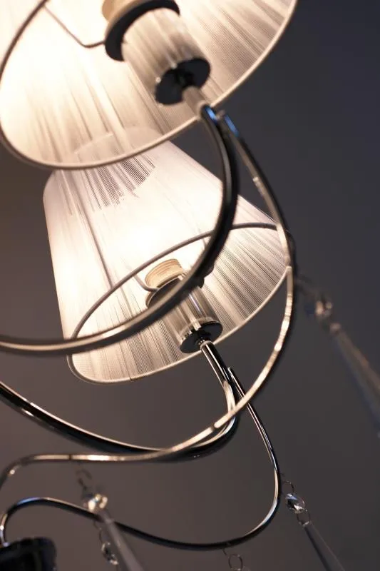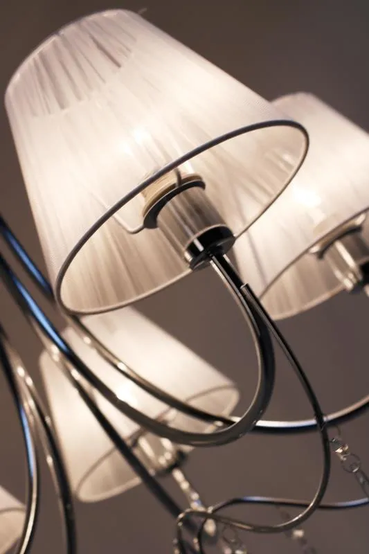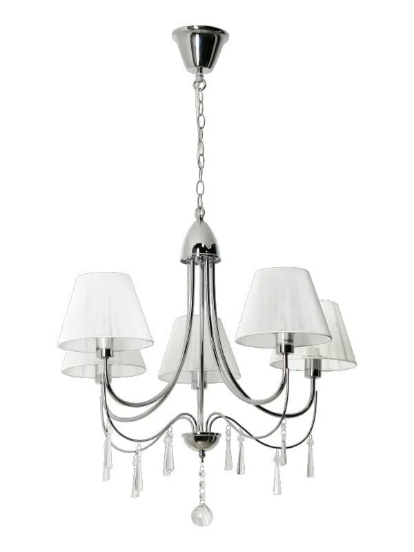 E303-Oscam to przyciągająca spojrzenia lampa utrzymana w stylu klasycznym. Jasny, materiałowy abażur nadaje lampie ciekawy a zarazem elegancki wygląd. Jej znakiem szczególnym są ozdobne kryształki zwisające z chromowanej, zaokrąglonej oprawy. Lampa została wyprodukowana z materiałów najwyższej jakości, dzięki czemu doskonale prezentuje się na każdym suficie. Szczególnie polecana do stylowych wnętrz.