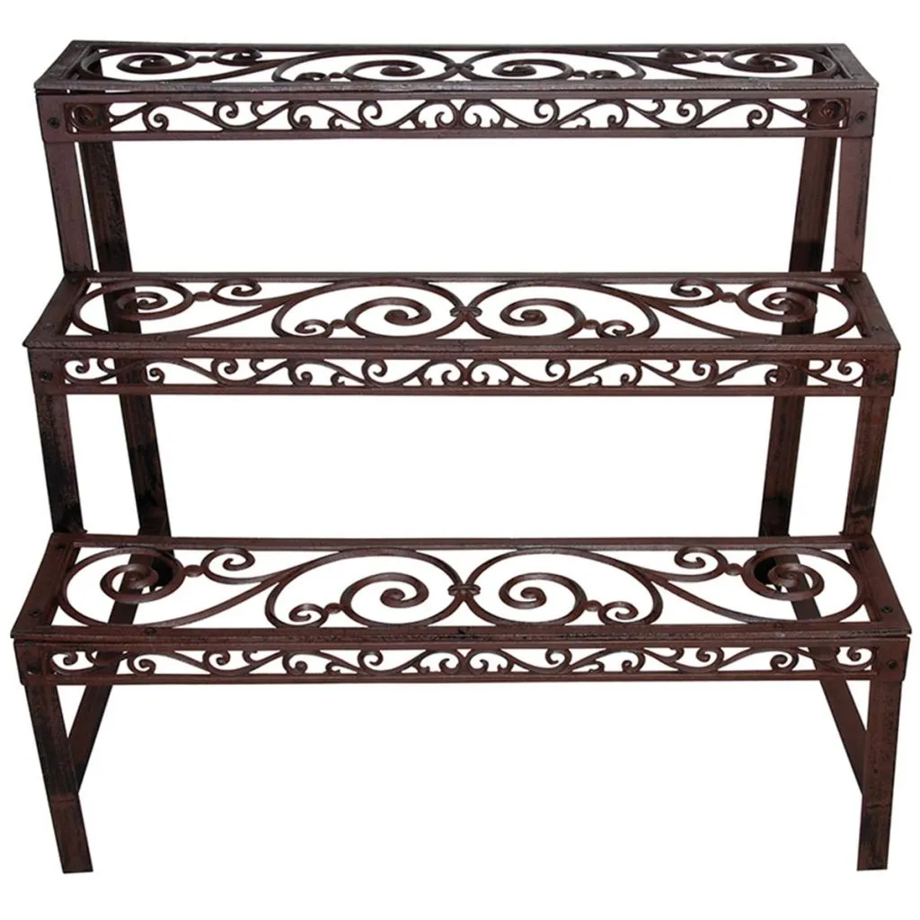 Etażerka BPH33 firmy Oleandro posiada żeliwną ramę i z pewnością zwróci na siebie uwagę w ogrodzie, na balkonie, tarasie, itp. Trzypoziomowy kwietnik może zostać postawiony przy dowolnej ścianie. Żeliwna rama sprawia, że jest on mocny, trwały i łatwy w czyszczeniu.