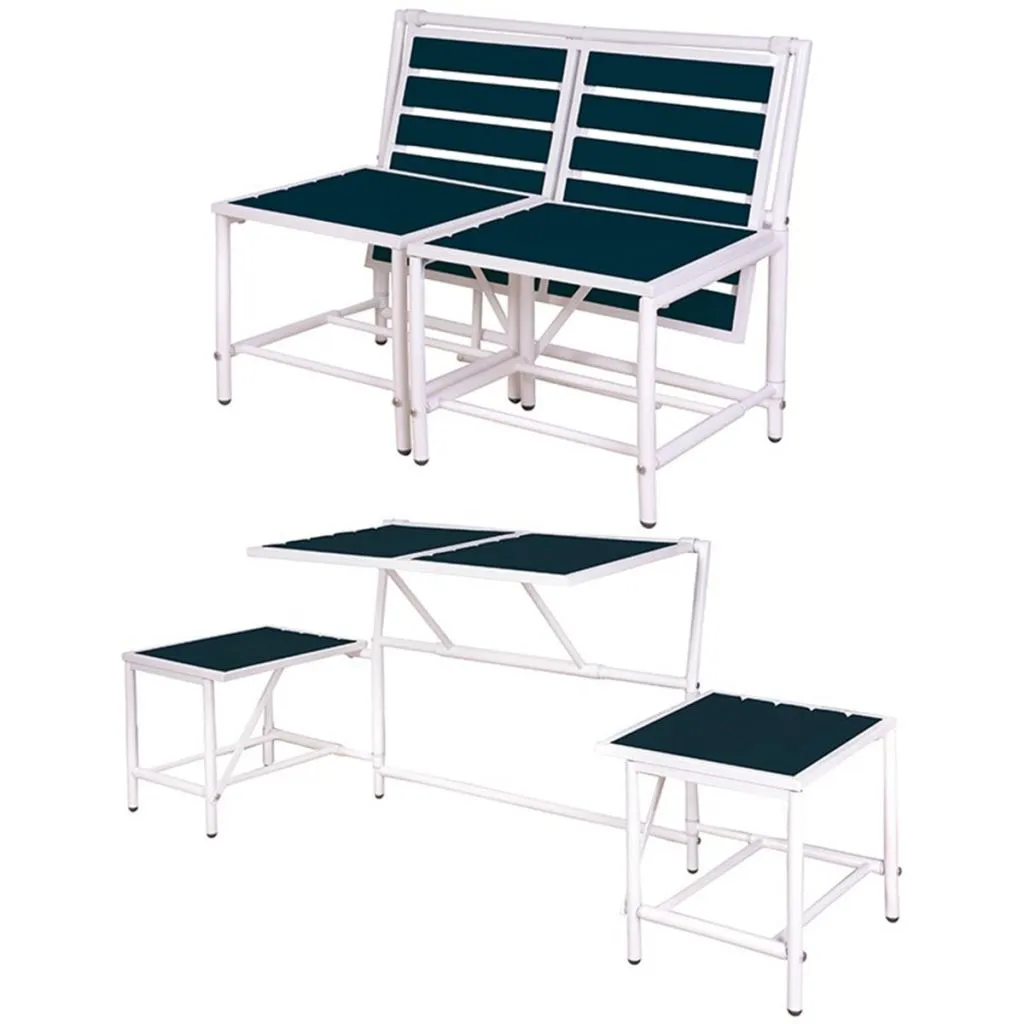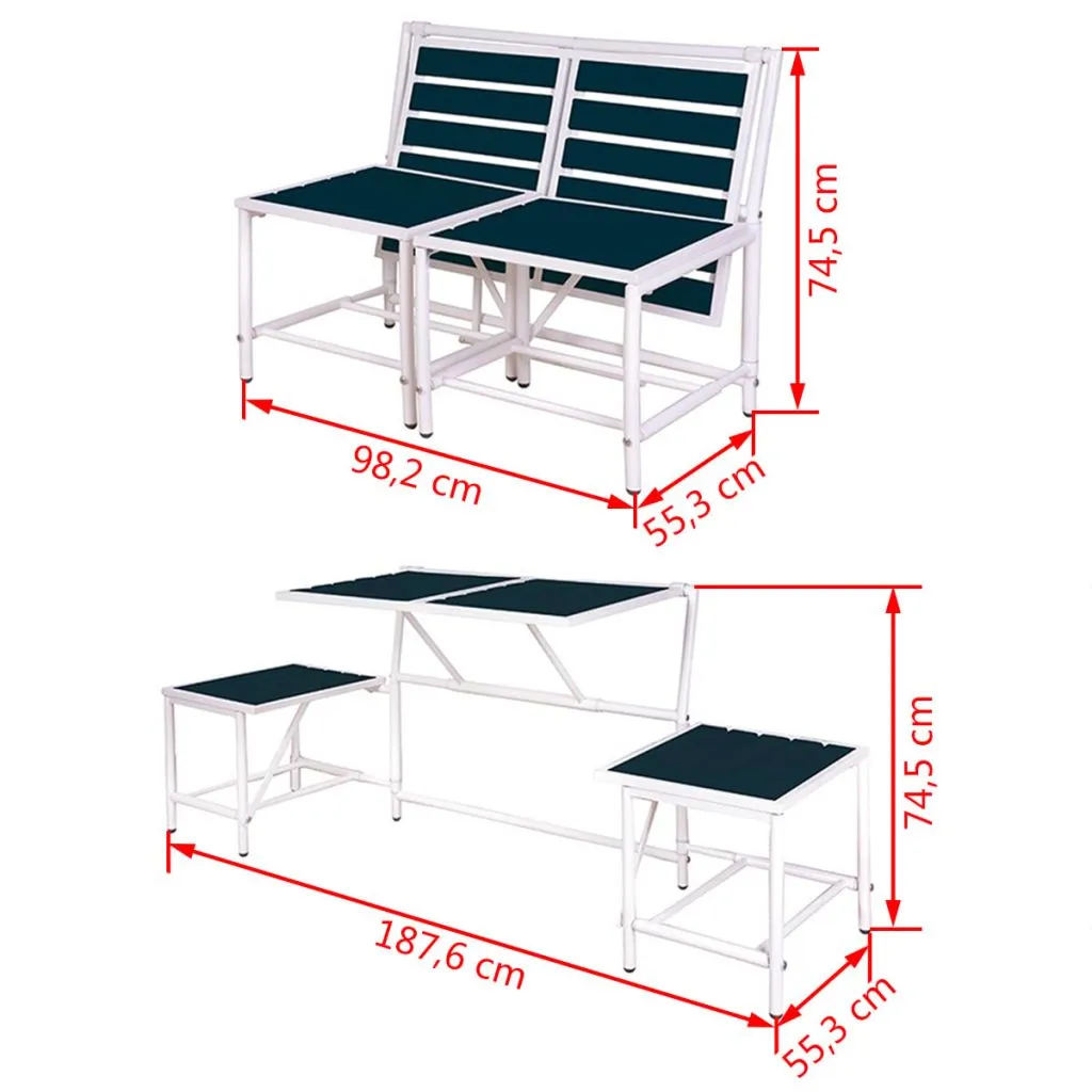 Ta magiczna ławka Dizzy67 firmy Esschert Design może służyć jako 2-osobowa ławka lub zostać przekształcona w stolik z dwoma siedziskami. Ławka została wykonana ze stali galwanizowanej i polywood (plastiku imitującego drewno). Stalowa rama sprawia, że mebel jest bardzo stabilny i trwały. Maksymalne obciążenie każdego siedziska wynosi 100 kg, a stolika 30 kg. Jeśli masz ograniczoną przestrzeń na swoim balkonie lub w ogrodzie, a chcesz ją wykorzystać maksymalnie, ta magiczna ławka będzie idealna, ponieważ możesz w mig zmienić jej ustawienie!