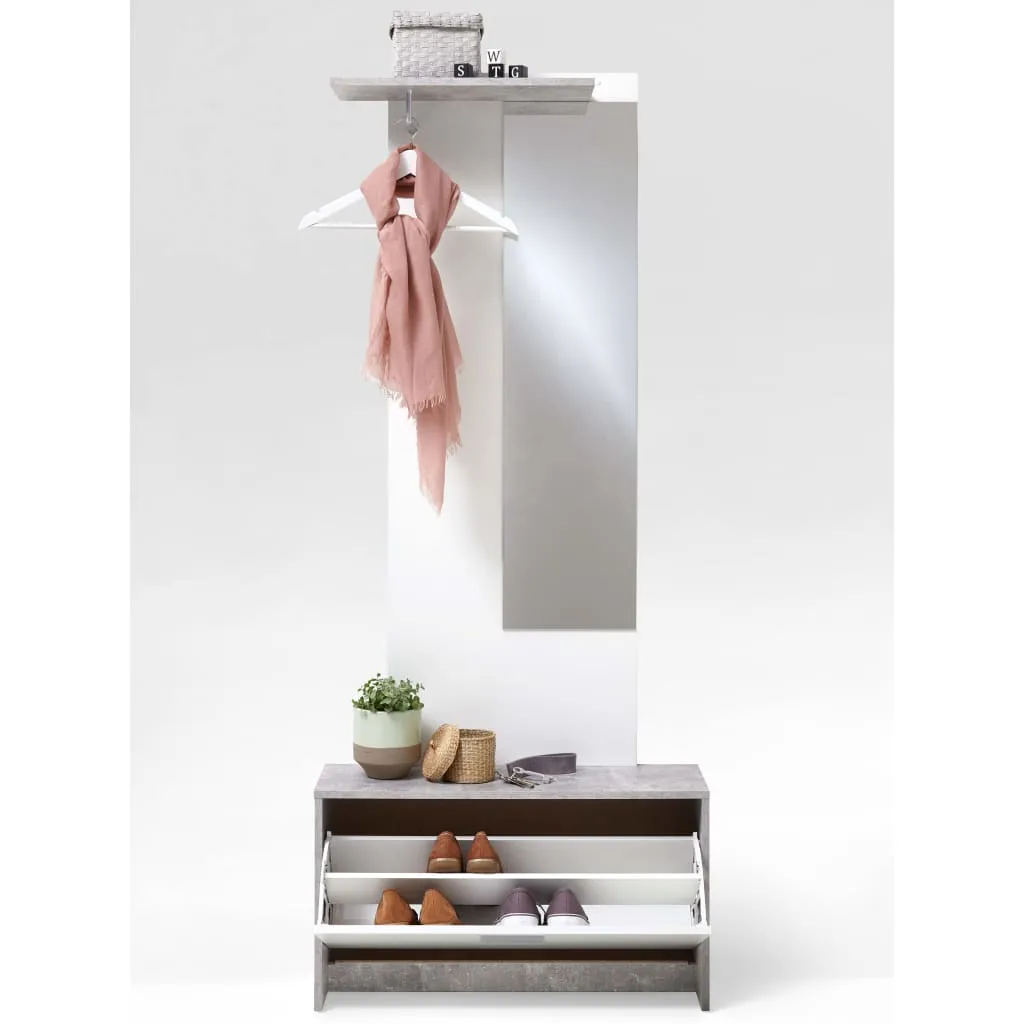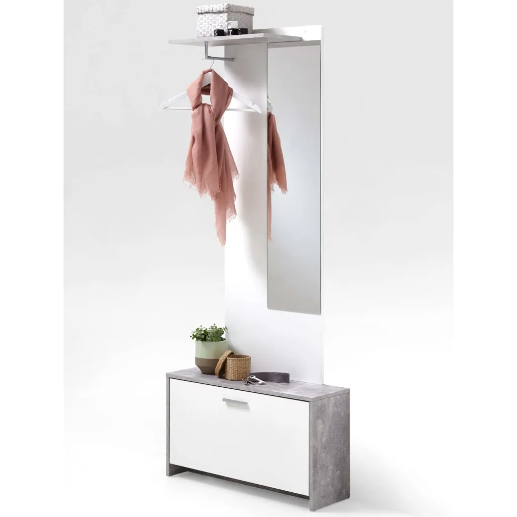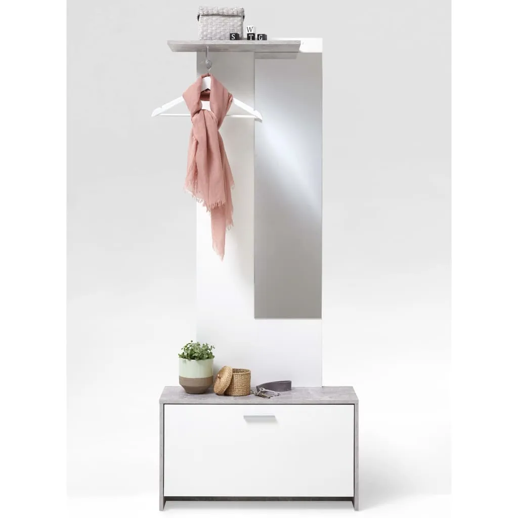 FMD Wieszak z lustrem i szafką, betonowa szarość i biel, 4019-001