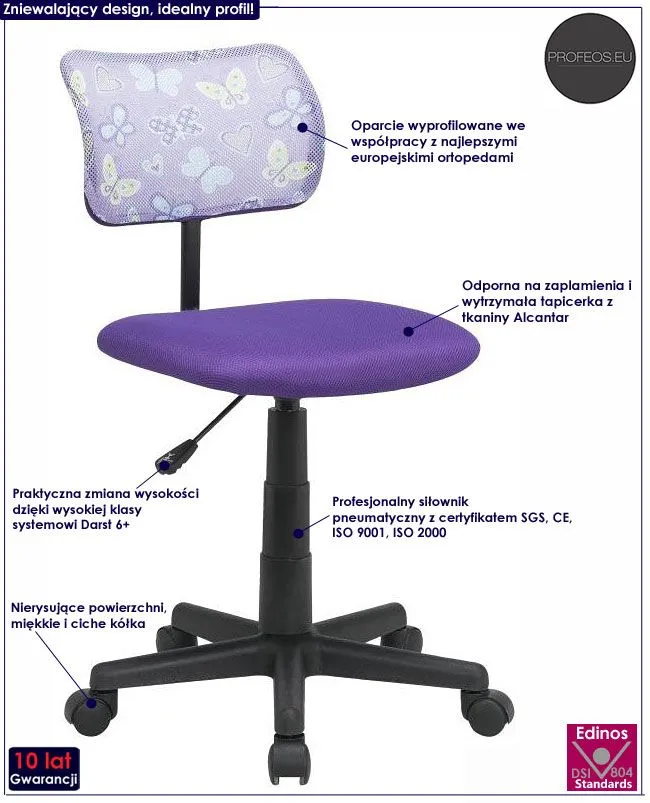 Urządzasz pokój swojego dziecka? Szukasz dla niego komfortowego krzesła obrotowego? Nie chcesz spędzać w przyszłości wielu godzin w kolejkach do ortopedy z Twoimi pociechami? Zadbaj o zdrowie i wygodne miejsce do nauki i zabawy dziecka. Dlaczego jest to aż tak ważne? Nieprawidłowo dopasowane meble powodują wady postawy od najmłodszych lat. Zadbaj o to, aby zwłaszcza meble do siedzenia były zawsze idealnie i zdrowo wyprofilowane. Zainwestuj w profesjonalny fotel Nando marki Profeos i stwórz najlepsze warunki do rozwoju Twojego dziecka. Strzeż się tanich chińskich krzeseł, które negatywnie wpływają na kręgosłup. Zadbaj o zdrową postawę Twojego dziecka od najmłodszych lat.