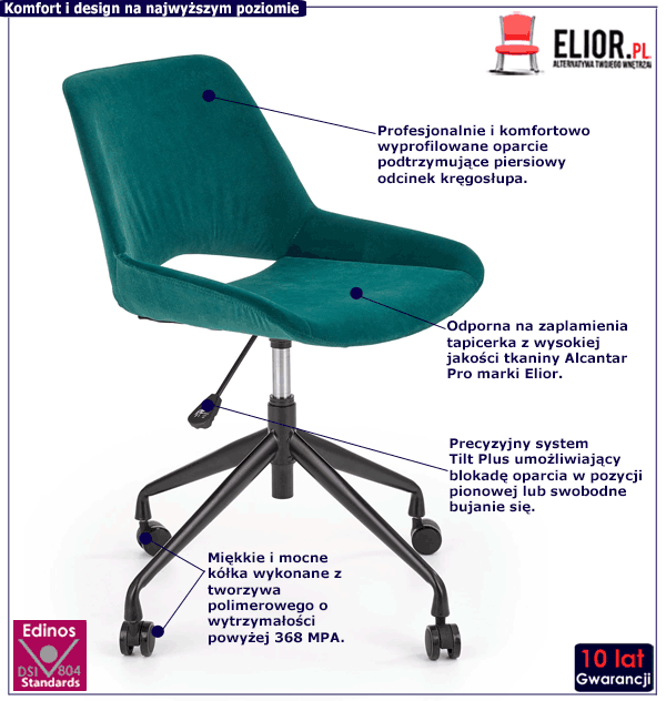• Kolor: ciemny zielony. Kliknij w link i sprawdź także inne obrotowe fotele młodzieżowe sklepie Edinos.pl. Stwórz swój praktyczny zestaw mebli.