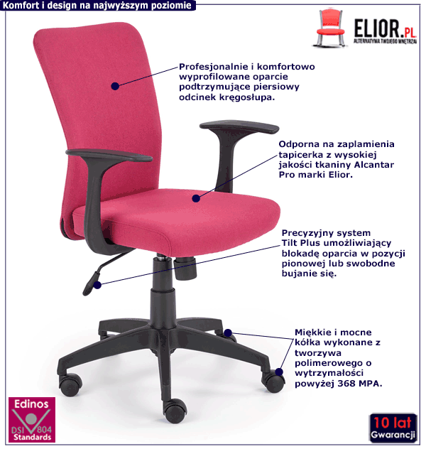 • Kolor: różowy. Kliknij w link i sprawdź także inne różowe fotele w sklepie Edinos.pl. Stwórz swój praktyczny zestaw mebli.