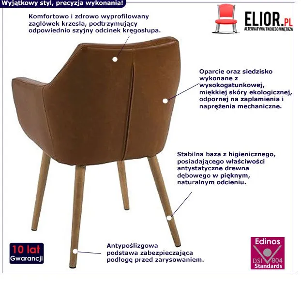- Modna kolorystyka: brązowy, naturalny dąb. Kliknij w link i sprawdź także inne tapicerowane fotele w sklepie Edinos.pl. Stwórz swój praktyczny zestaw mebli.
