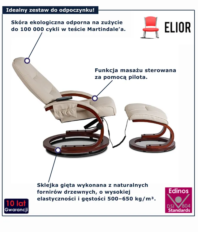 • Profesjonalna tapicerka ze skóry ekologicznej o wysokich parametrach technicznych - odporność na zużycie do 100 000 cykli w teście Martindale’a.