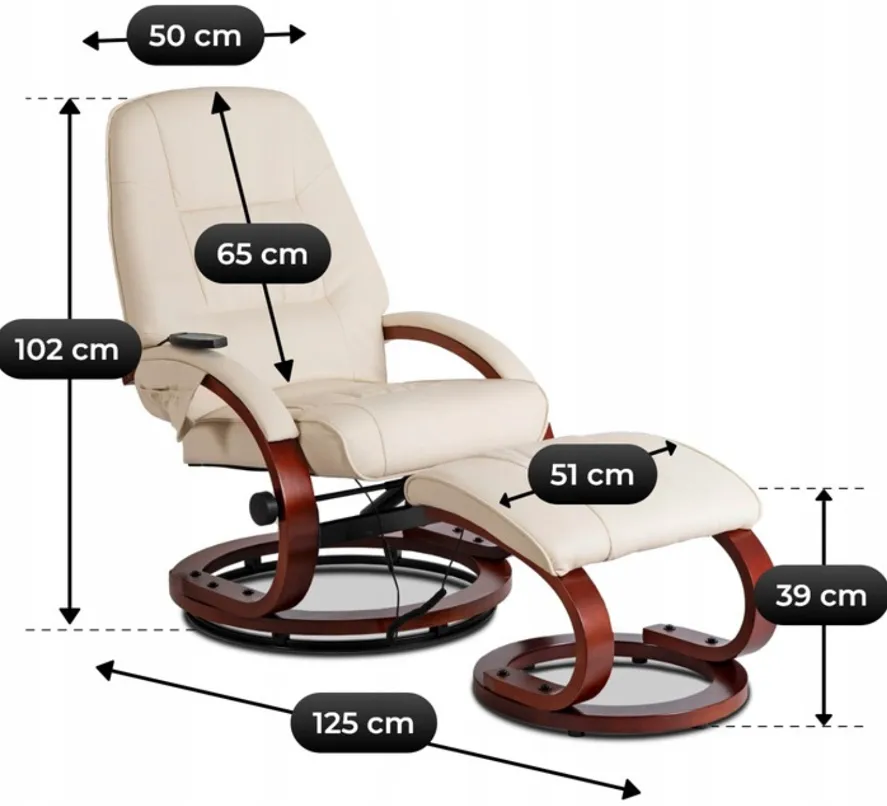 Fotel masujący z podnóżkiem jasnobeżowy - Cushy 3X