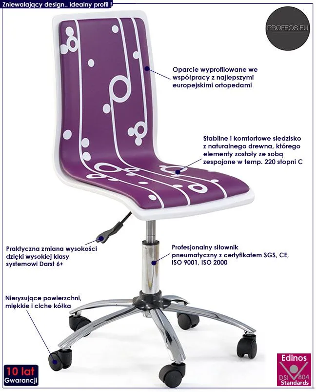 Szukasz krzesła do biurka atrakcyjnego wizualnie? Pragniesz aby Twoje Dziecko siedziało komfortowo podczas odrabiania lekcji czy grania na komputerze? Nie chcesz spędzać z nim w przyszłości wielu godzin w gabinetach ortopedycznych? Zadbaj o zdrowie i wygodne miejsce do nauki oraz zabawy dziecka. Dlaczego jest to aż tak ważne? Nieprawidłowo dobrane meble powodują wady postawy już od najmłodszych lat. Zadbaj o to, aby zwłaszcza meble do siedzenia były zawsze idealnie i zdrowo wyprofilowane. Zainwestuj w profesjonalny fotel obrotowy Famis marki Profeos i stwórz najlepsze warunki do rozwoju Twojego dziecka. Strzeż się tanich chińskich krzeseł, które negatywnie wpływają na kręgosłup. Zadbaj o zdrową postawę Twojego dziecka od najmłodszych lat.