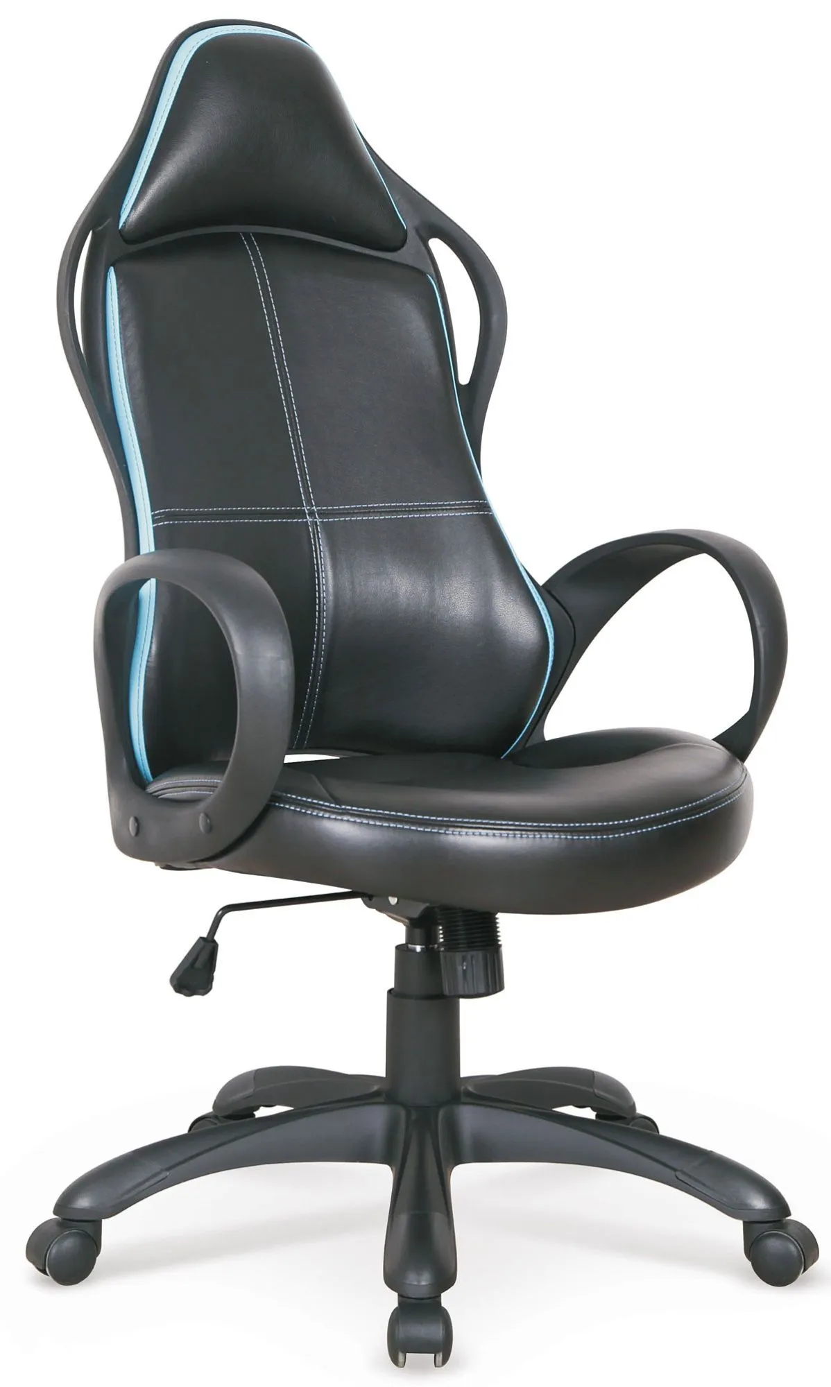- Modny kolor: Czarno-niebieski. W ofercie posiadamy także fotel Uzet w kolorze czarno-czerwonym z tapicerką materiałową. Jeżeli jesteś zainteresowany tym kolorem, zapraszamy tutaj.