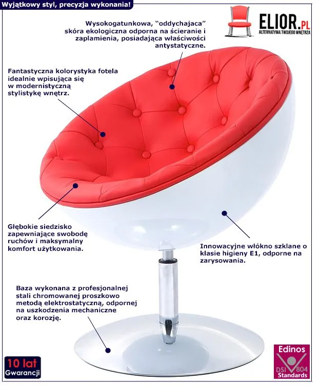 - Modna kolorystyka: czerwony, biały. Kliknij w link i sprawdź także inne fotele wypoczynkowe w sklepie Edinos.pl. Stwórz swój praktyczny zestaw mebli.