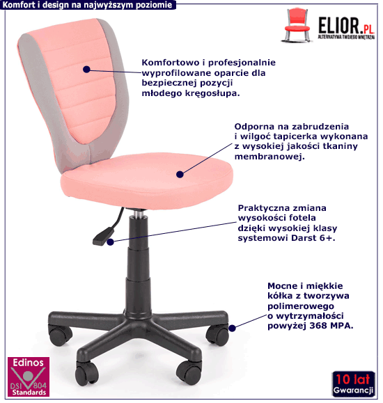 • Kolor: różowo-popielaty. Kliknij w link i sprawdź także inne różowe fotele dziecięce w sklepie Edinos.pl. Stwórz swój praktyczny zestaw mebli.
