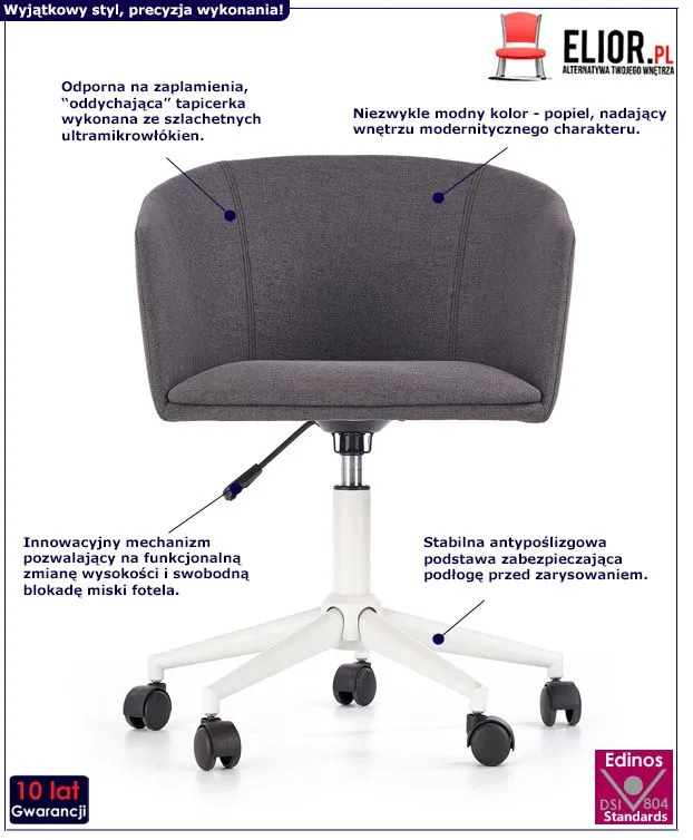 - Modna kolorystyka: modernistyczny popiel oraz nowoczesna biel. Kliknij w link i sprawdź także inne fotele obrotowe w sklepie Edinos.pl. Stwórz swój praktyczny zestaw mebli.