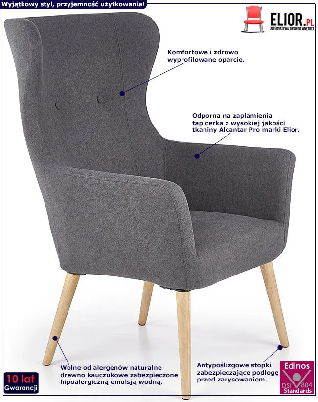 - Modny kolor: Ciemny Popiel. Kliknij w link i sprawdź także inne szare fotele wypoczynkowe w sklepie Edinos.pl. Stwórz swój praktyczny zestaw mebli.