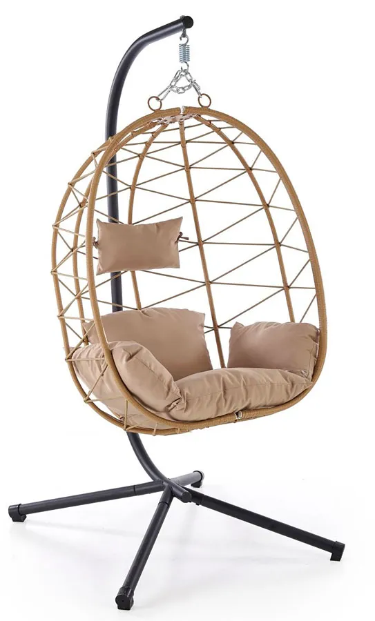 Fotel wiszący z beżowymi poduszkami - Valetta