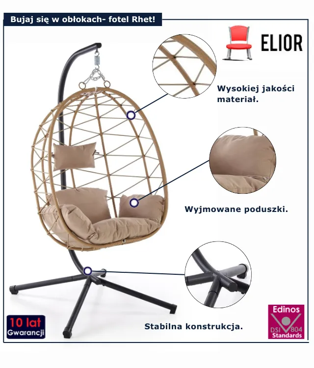• Modny kolor: beżowy. Kliknij w link i sprawdź także inne  fotele wiszące. w sklepie Edinos.pl. Stwórz swój praktyczny zestaw mebli.