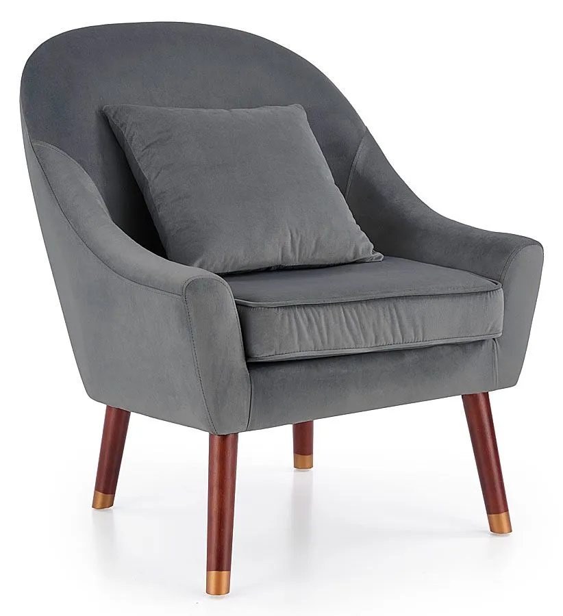 - Modny kolor: Tapicerka ciemnopopielata, profil fotela w kolorze ciemny orzech ze złotymi końcówkami. Kliknij w link i sprawdź także inne fotele wypoczynkowe w sklepie Edinos.pl. Stwórz swój praktyczny zestaw mebli.