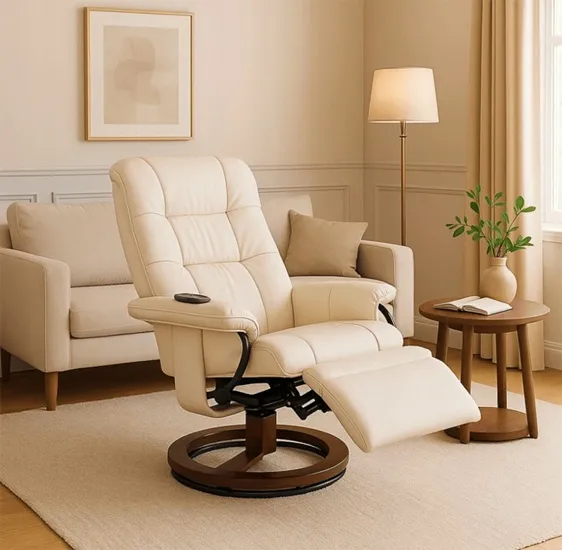 • Totalne rozłożenie się: Wysuń wbudowany podnóżek i odchyl regulowane oparcie do pozycji półleżącej, aby znaleźć idealny kąt do czytania, drzemki czy oglądania filmu.