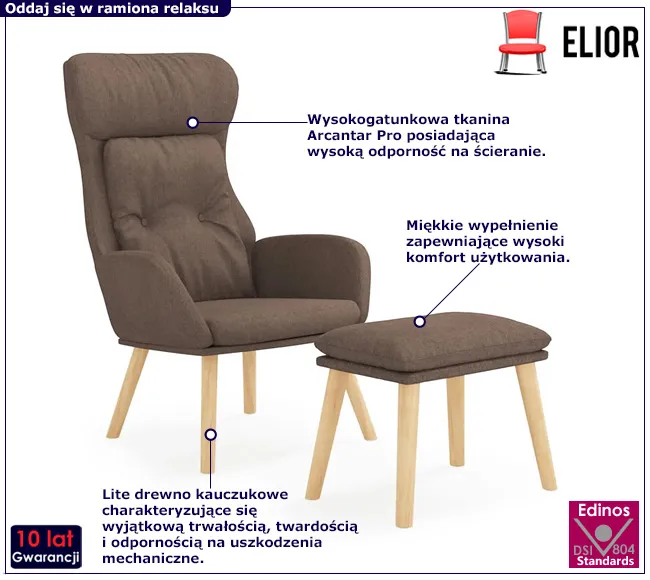 • Kolor: Taupe. Zobacz także inne brązowe fotele w sklepie Edinos.pl. Stwórz swój praktyczny zestaw mebli.