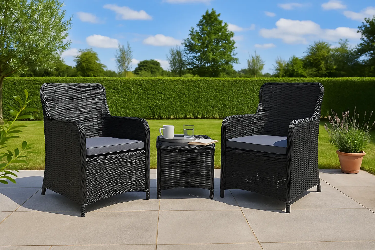 Modny kolor: czarny + szare siedzisko. W ofercie mamy także fotele Stili w kolorach: brąz + białe siedzisko i brąz + szare siedzisko. Kliknij w link i sprawdź, która wersja kolorystyczna kompletu Stili najlepiej pasuje do Twojego ogrodu. Stwórz własny zestaw mebli w wakacyjnym klimacie!